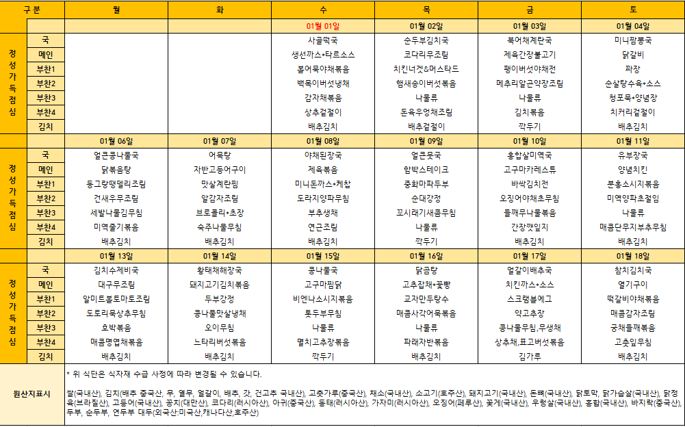 2025³â 1¿ù ½Ä´ÜÇ¥(2)